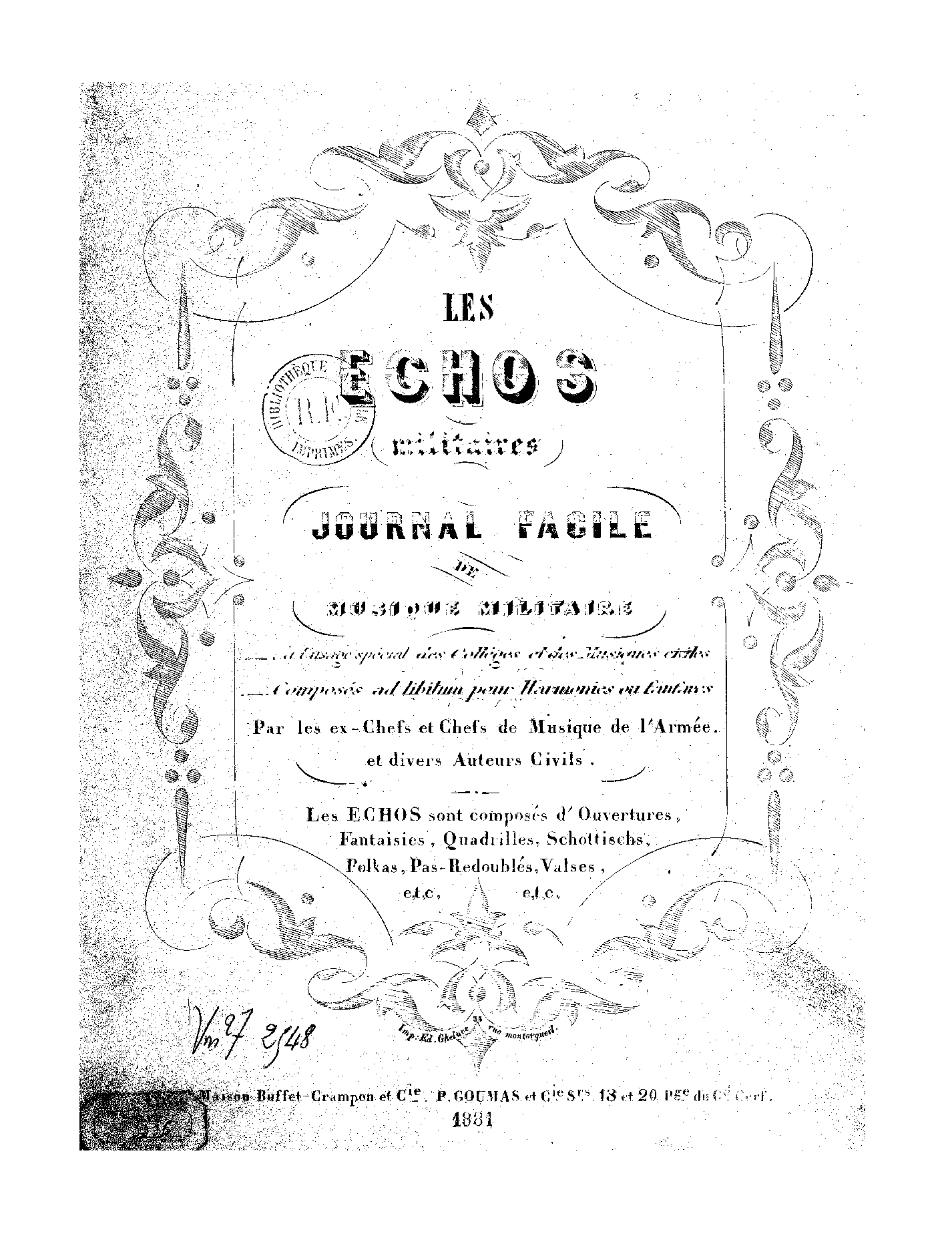 | Copyright Information | Publication noted in the Bibliographie de la France : 70e année, 2e série, Nº 34, 20 Août 1881, p.489, reg.3245. |