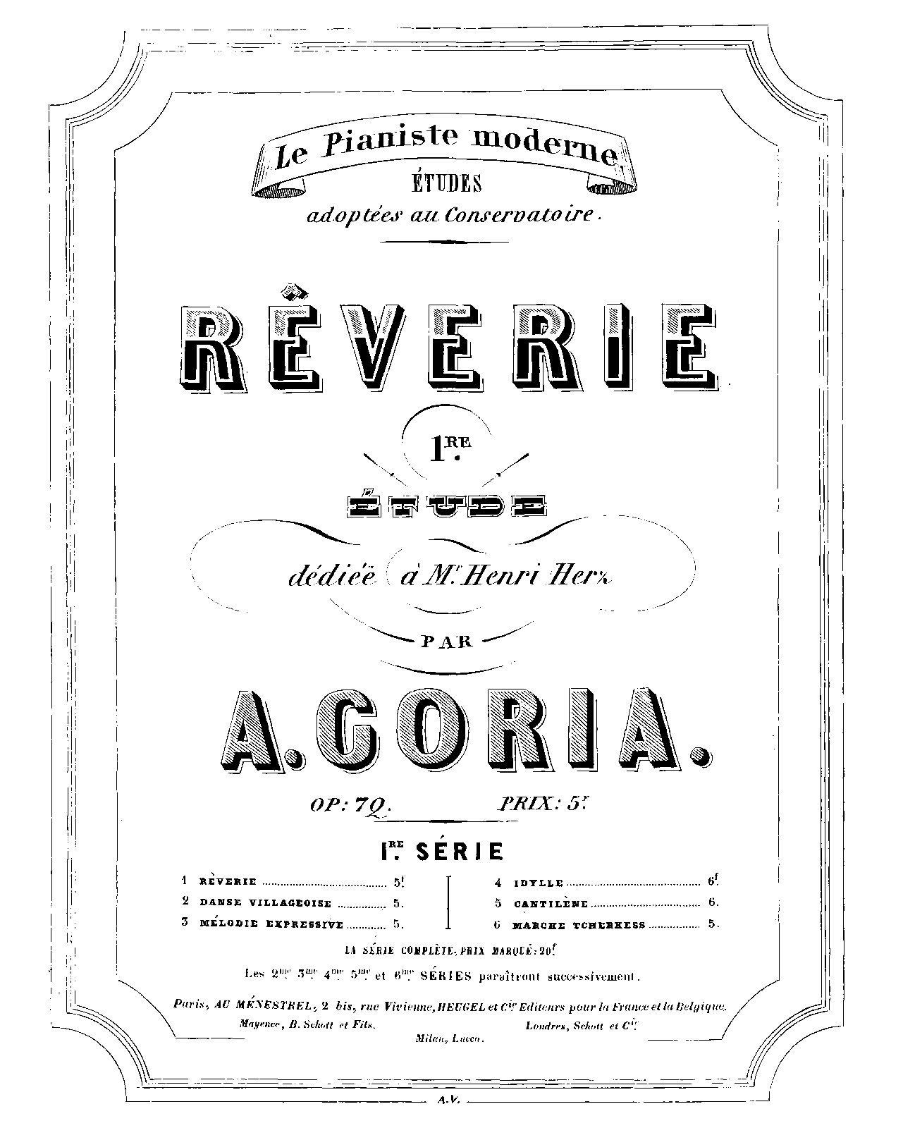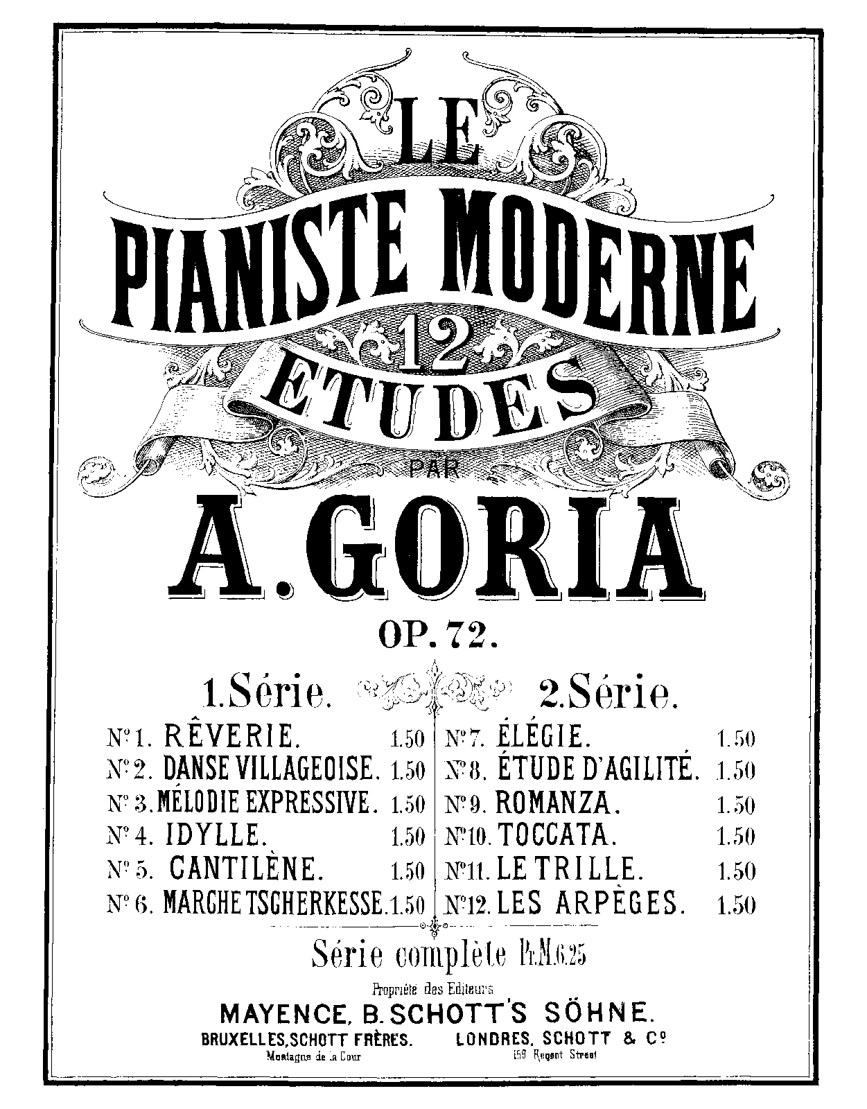 Heugel originally, and mistakenly, published the first book as Op.70. Heugel had published Goria's Op.69 by November, 1854 while Chabal had published Goria's Op.70 by August, 1854. When Heugel published the second book in 1856 it was correctly identified as Op.72.