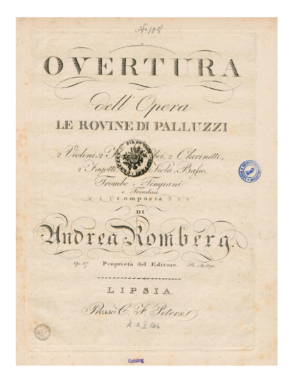 | Alternative. Title | Die Ruinen von Paluzzi, romantische Oper |