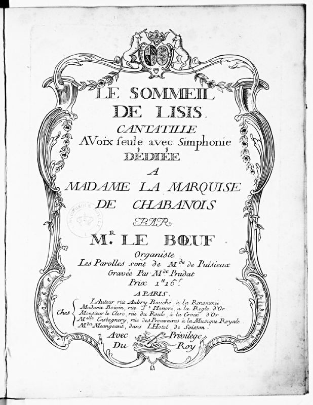 | Work Title | Le Sommeil de Lisis, cantatille à voix seule avec simphonie |