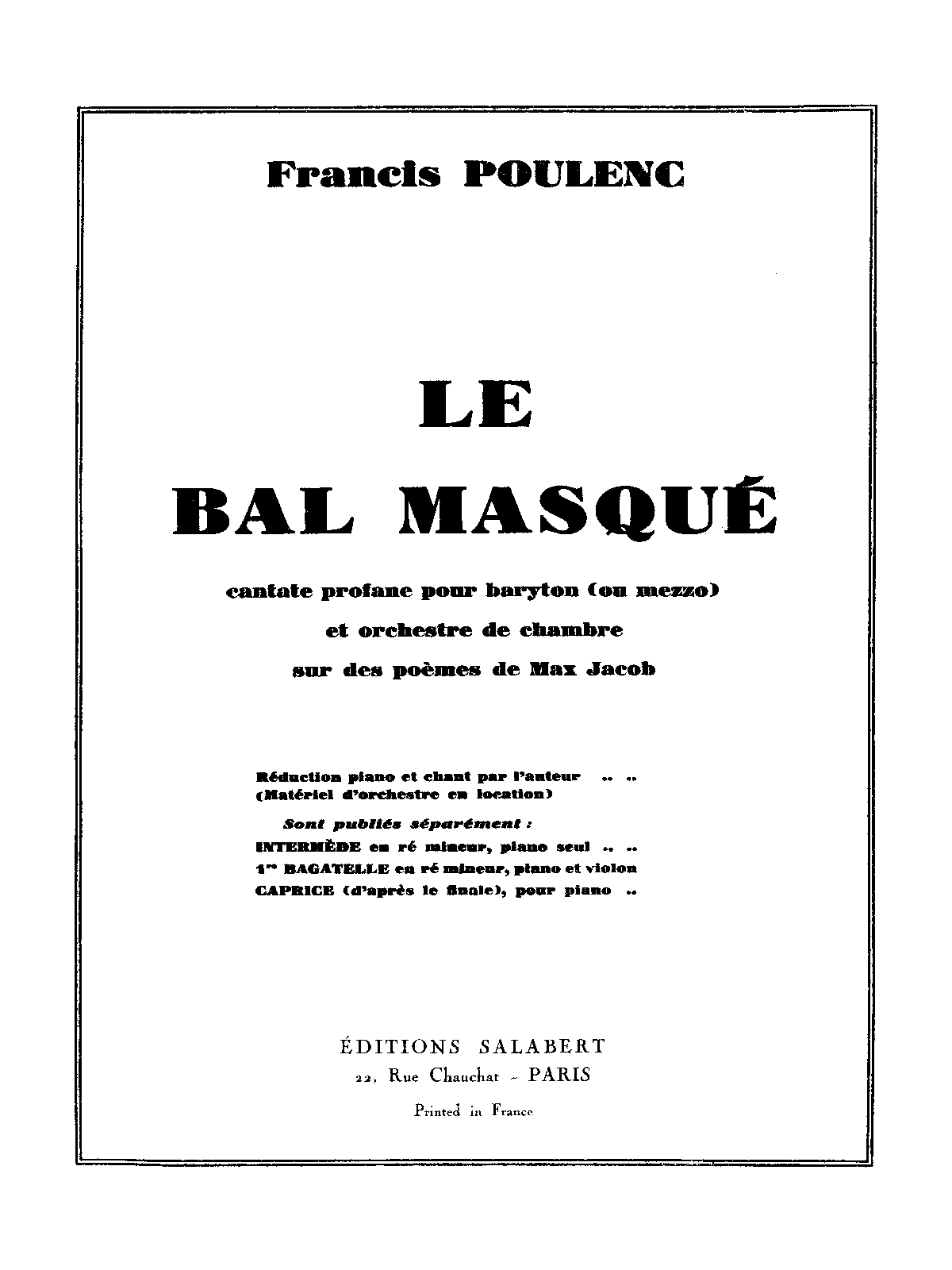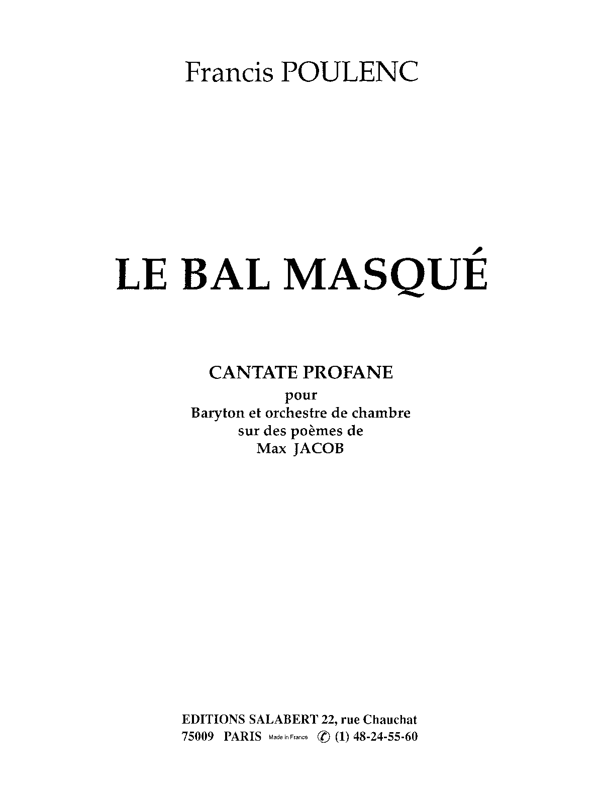 | Work Title | Le bal masqué (Cantate profane sur des poèmes de Max Jacob) |
