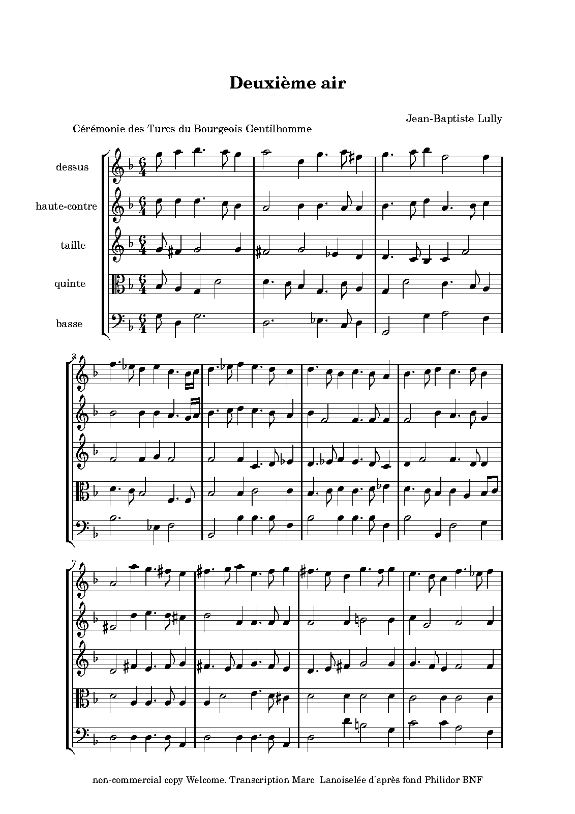 ⇒ 5 more: Troisième Air • Chaconne des Scaramouches, Trivelins et Arlequins • Engraving files (Lilypond & NWC) Deuxième air • Engraving files (Lilypond & NWC) Troisième air • Engraving files (Lilypond & NWC) Chaconne