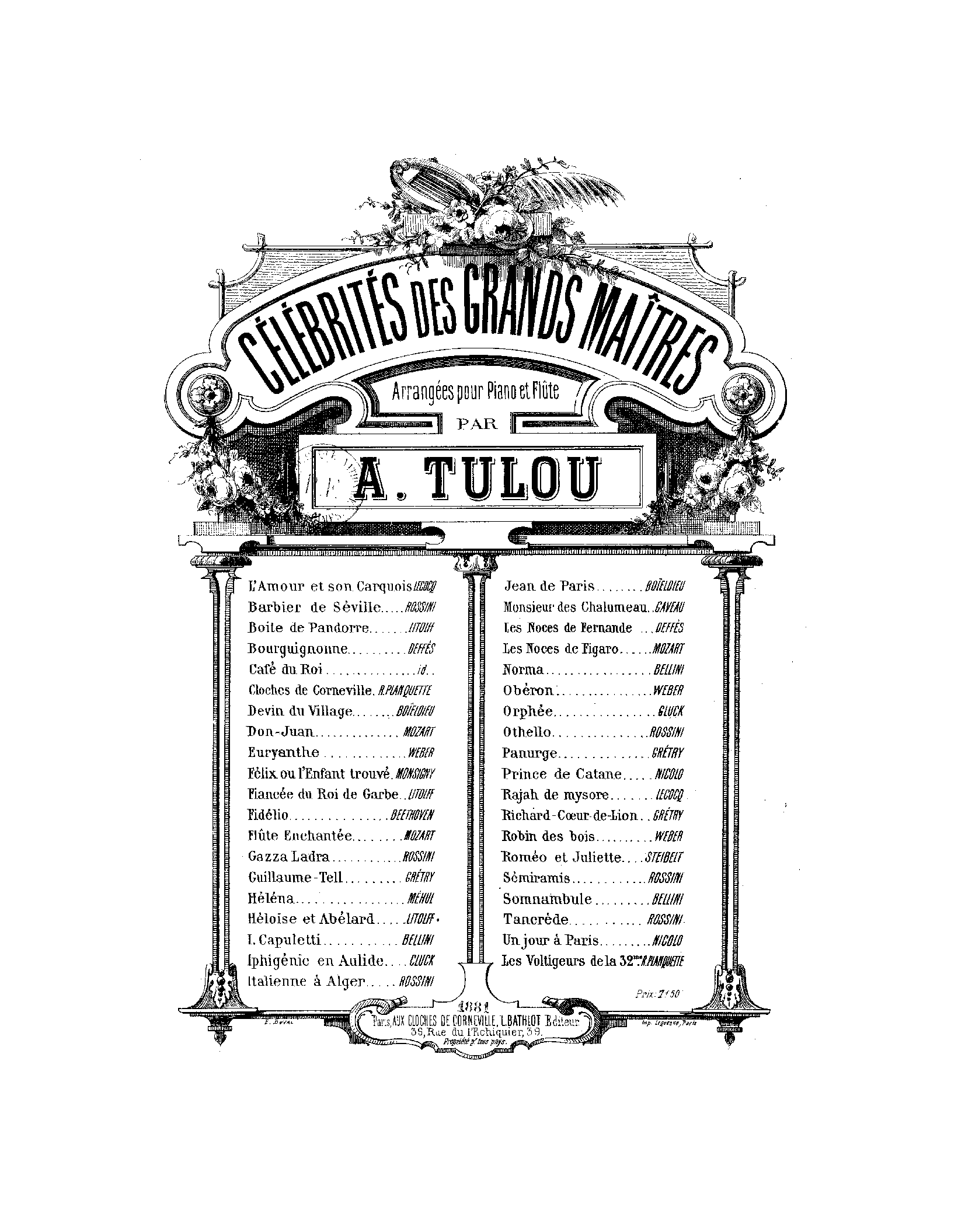 | Copyright Information | Publication noted in the Bibliographie de la France : 51e année, 2e série, Nº 3, 18 Janvier 1862, p.35, reg.148 (vocal score). |