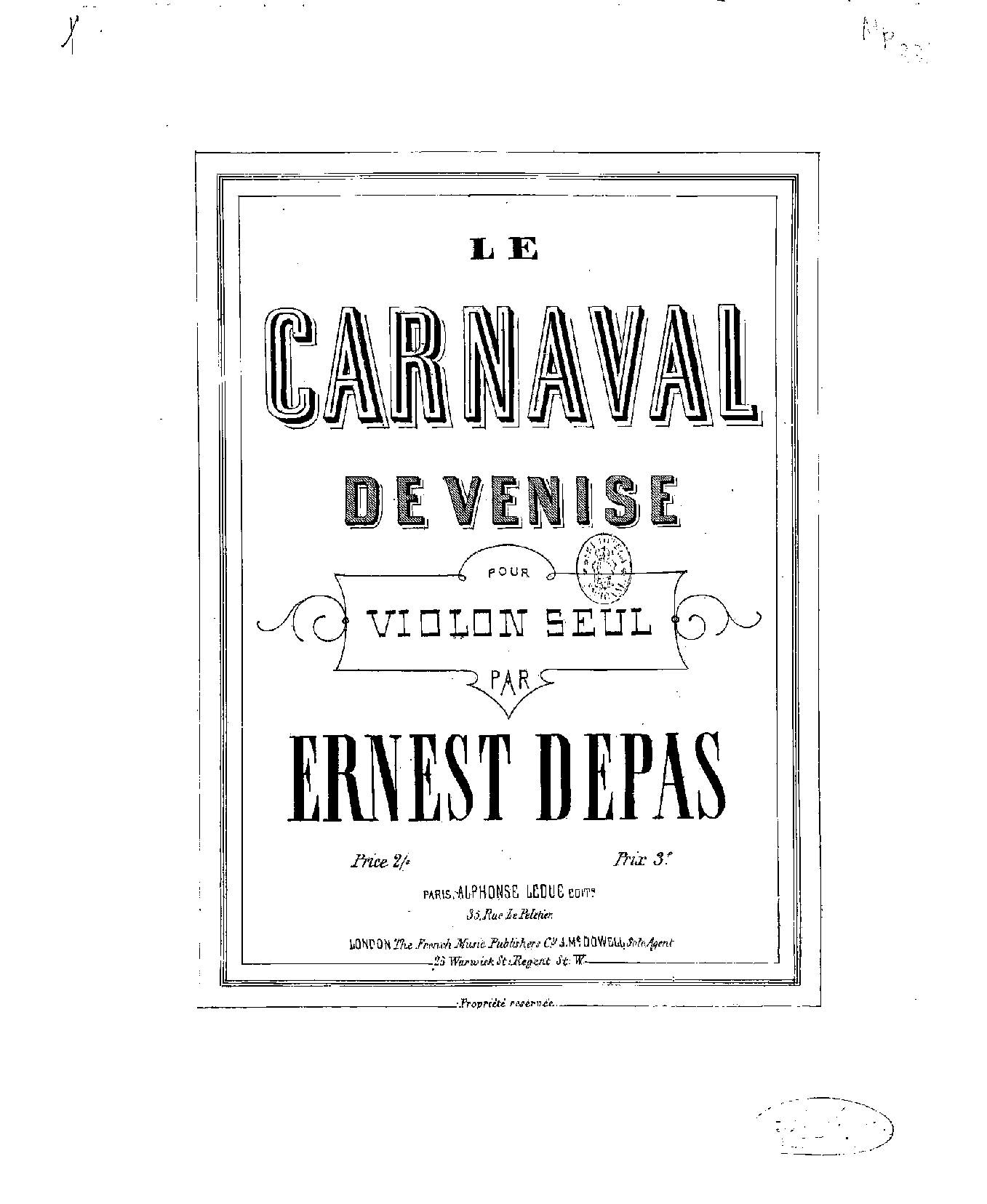 | Extra Information | Though the work doesn't specify "variations" anywhere, there are 4 sections markes "No.1", "No.2" etc., and they are clear variations on the Carnival of Venice theme. Publication noted in the Bibliographie de la France 2e série, 59e année, Nº 10, 5 Mars 1870, p.106, reg.534. - may be this one. |