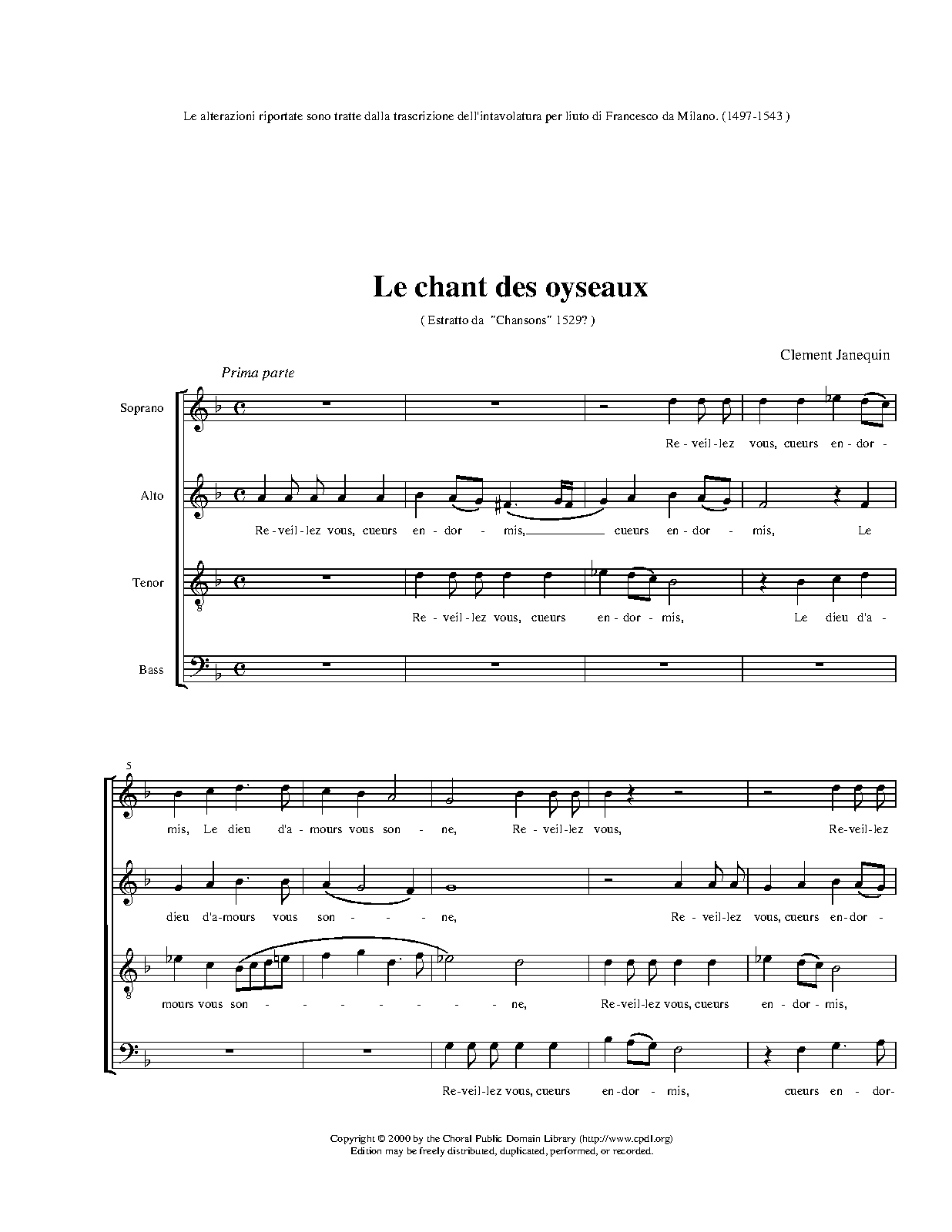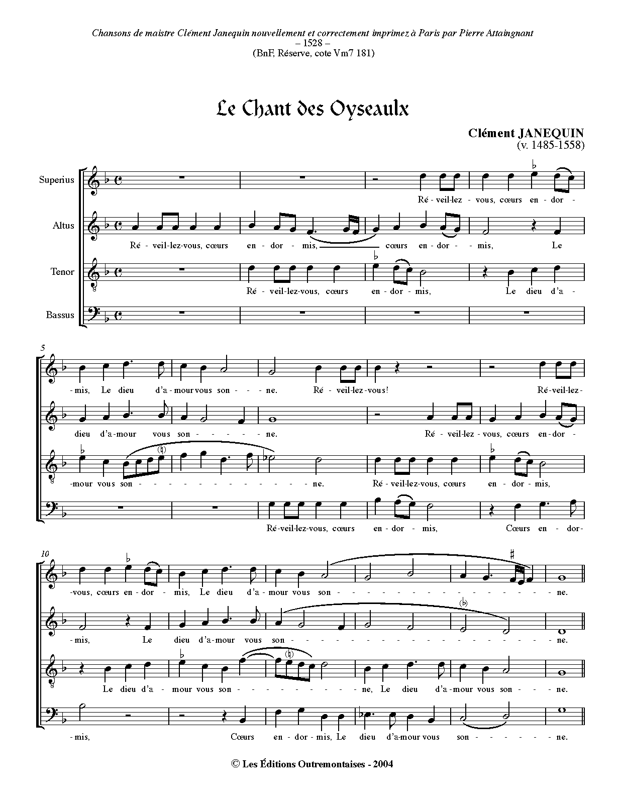 | Incipit | Reveillez vous, cueurs endormis |