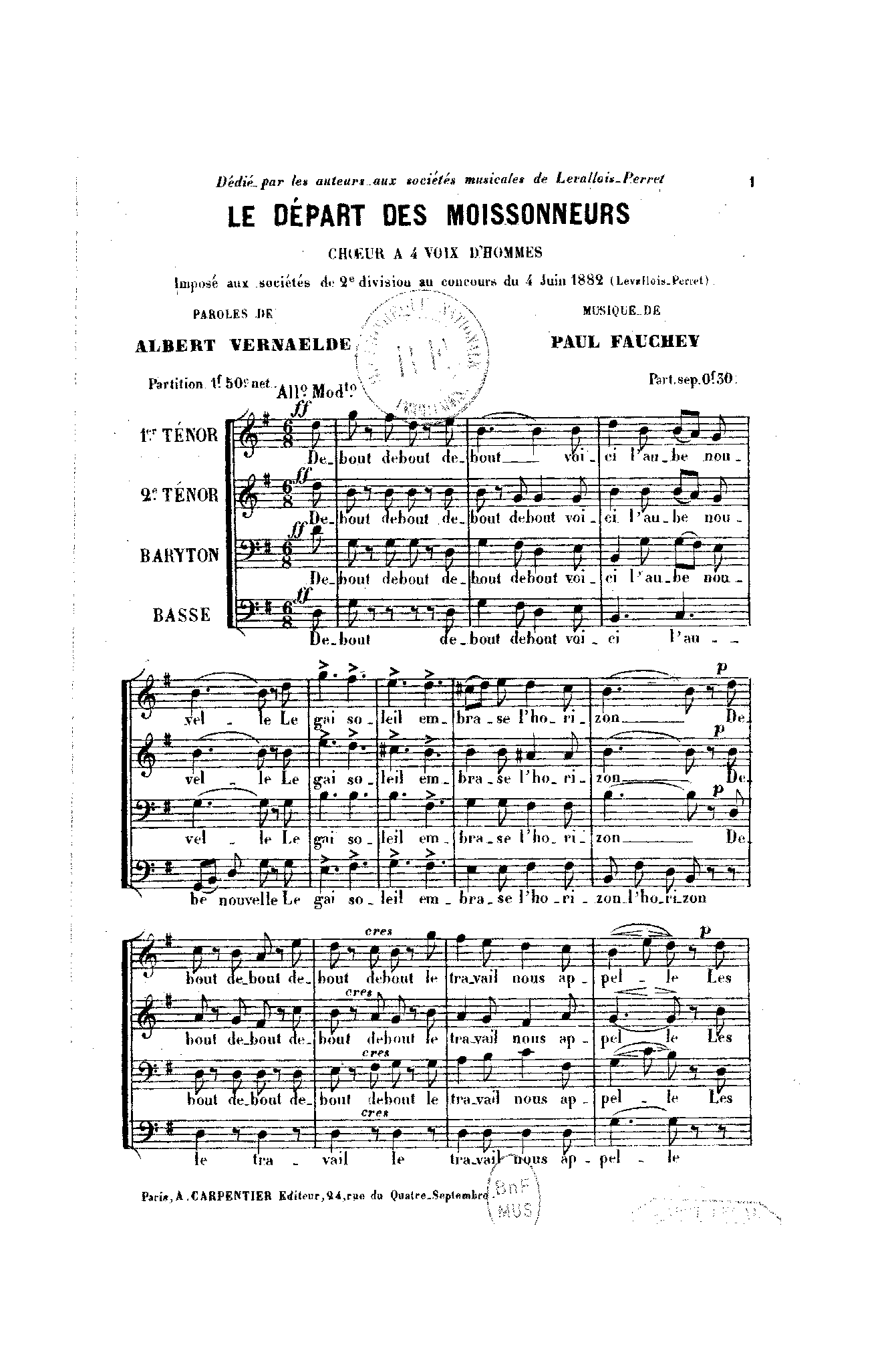 Dédié par les auteurs aux sociétés musicales de Levallois-Perret