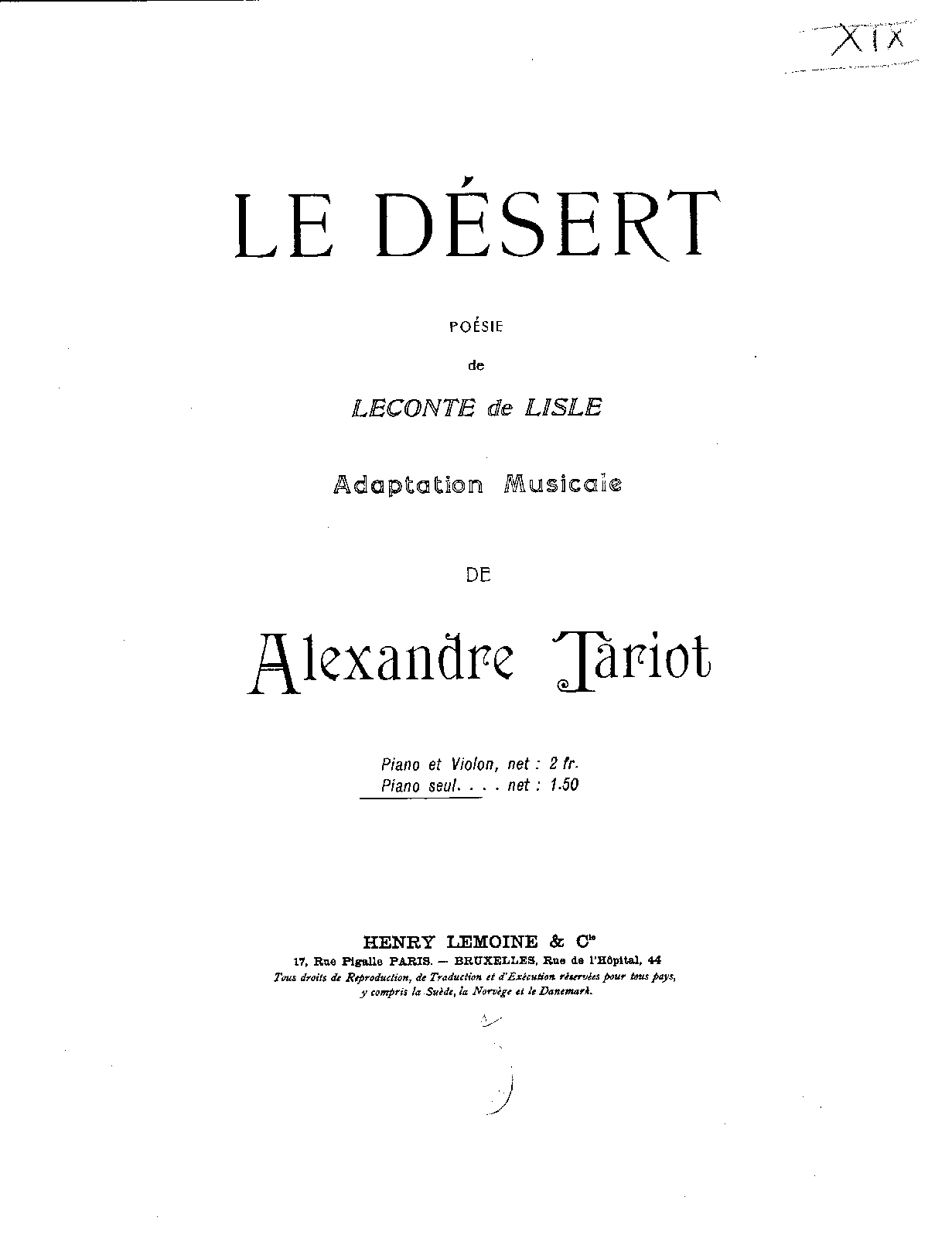 | Dedication | Pour Monsieur (Léon) Brémont (1852-1939) |