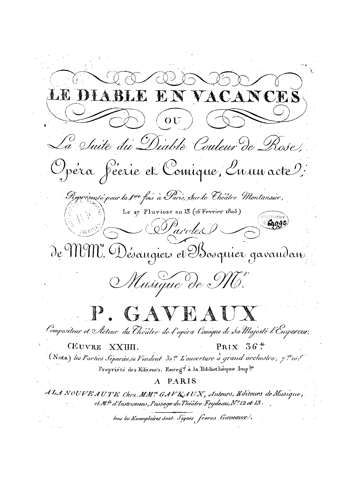 | Work Title | Le diable en vacances, ou La suite du diable couleur de rose |