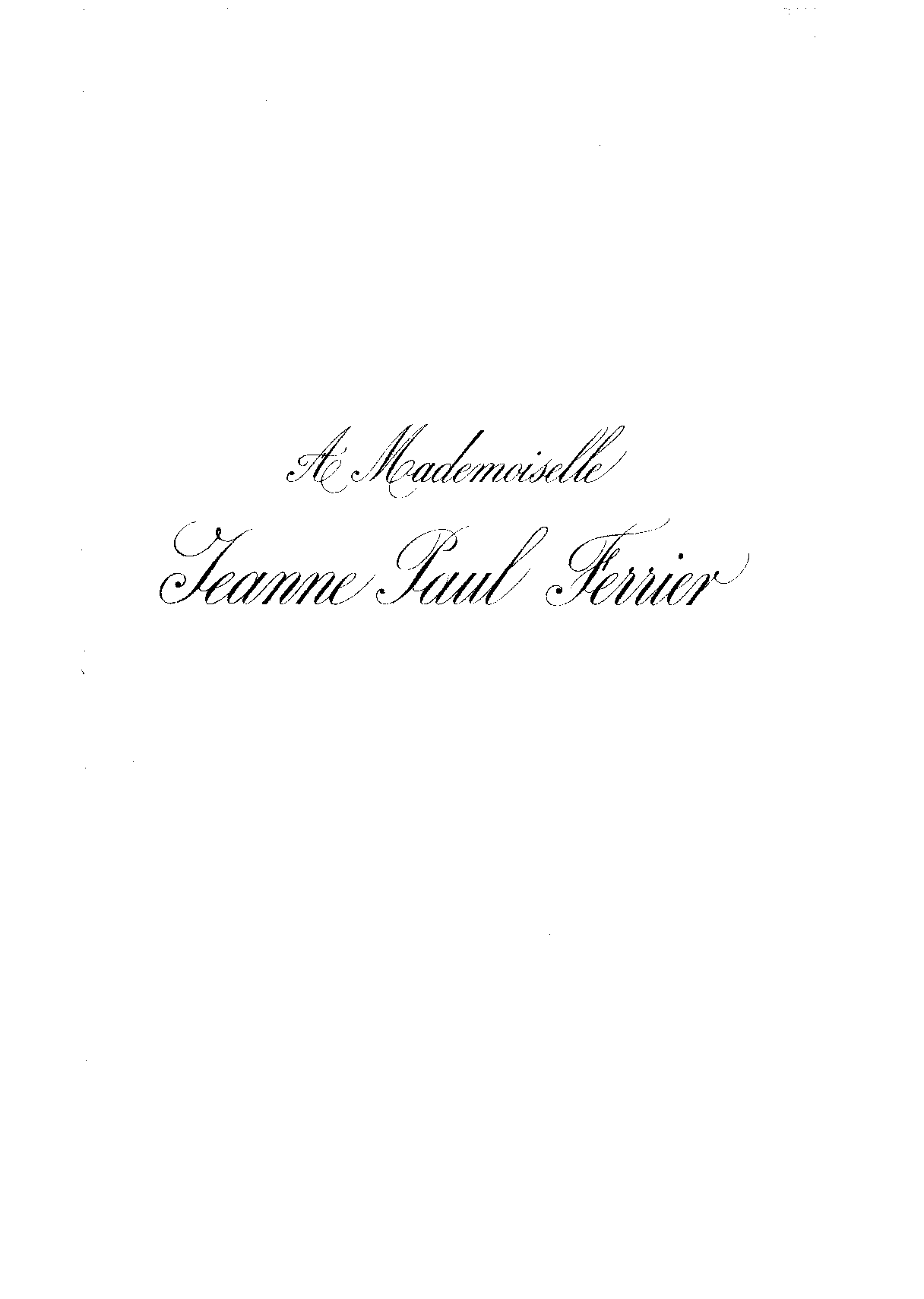 | Dedication | A Mademoiselle Jeanne Paul Ferrier |