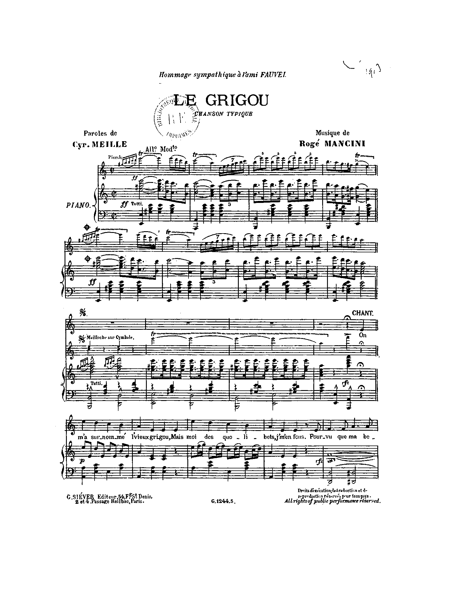 | Genre Categories | Chansons; Songs; For voice, piano; |