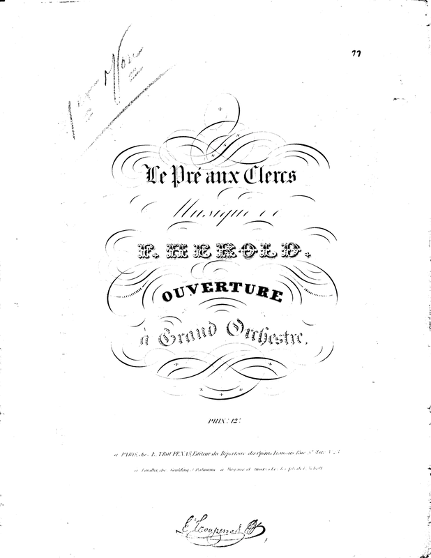 | Extra Information | Some excerpts noted as published in 1833 here: Publication noted in the Bibliographie de la France 1e série, 22e année, 36e de la collection, Nº 3, 19 Janvier 1833, page 48, registration 10. (possibly the full score excerpts published above but more likely these are vocal score excerpts or similar.) |