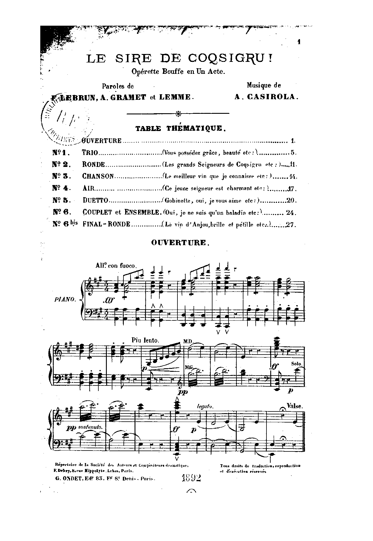 | Librettist | Félix Lebrun (?–1917) Alphonse Gramet (?–1922) Paul Lemme (?–1902) |