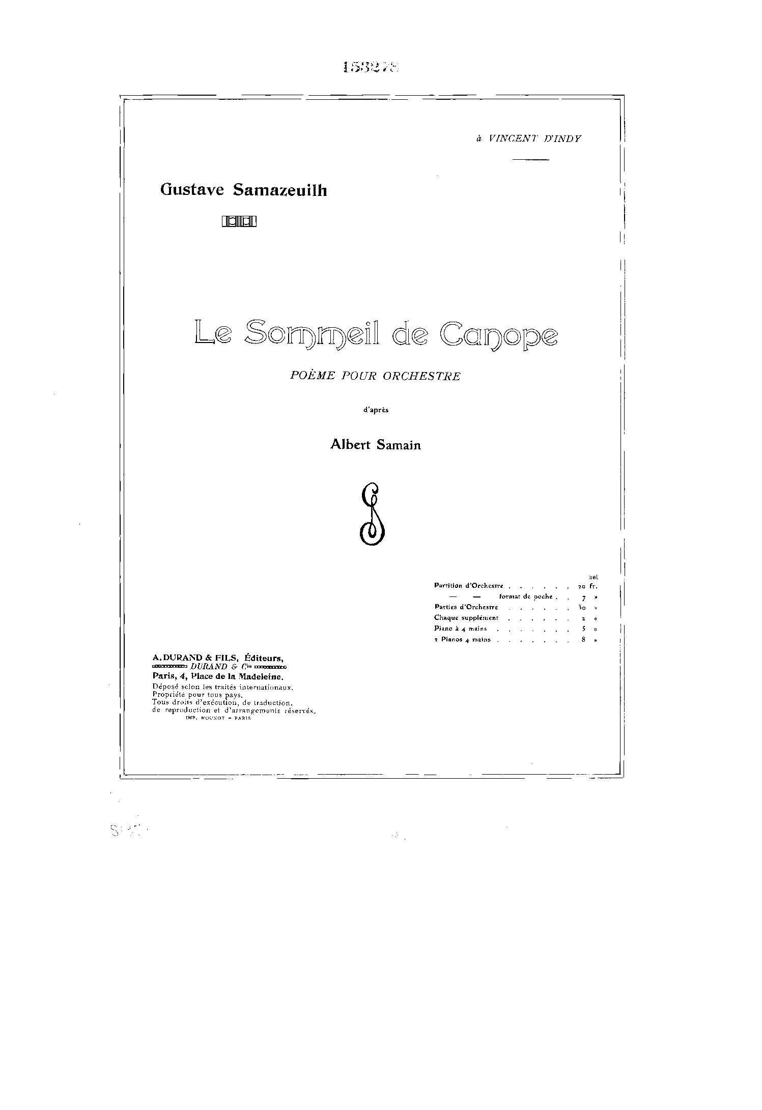 Paris: Durand, 1909. Plate D. & F. 7290.