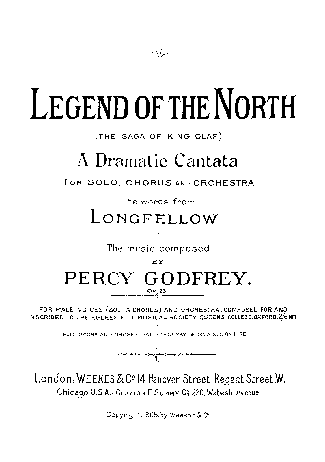 | Alternative. Title | The Saga of King Olaf; A Dramatic Cantata for Solo, Chorus and Orchestra |