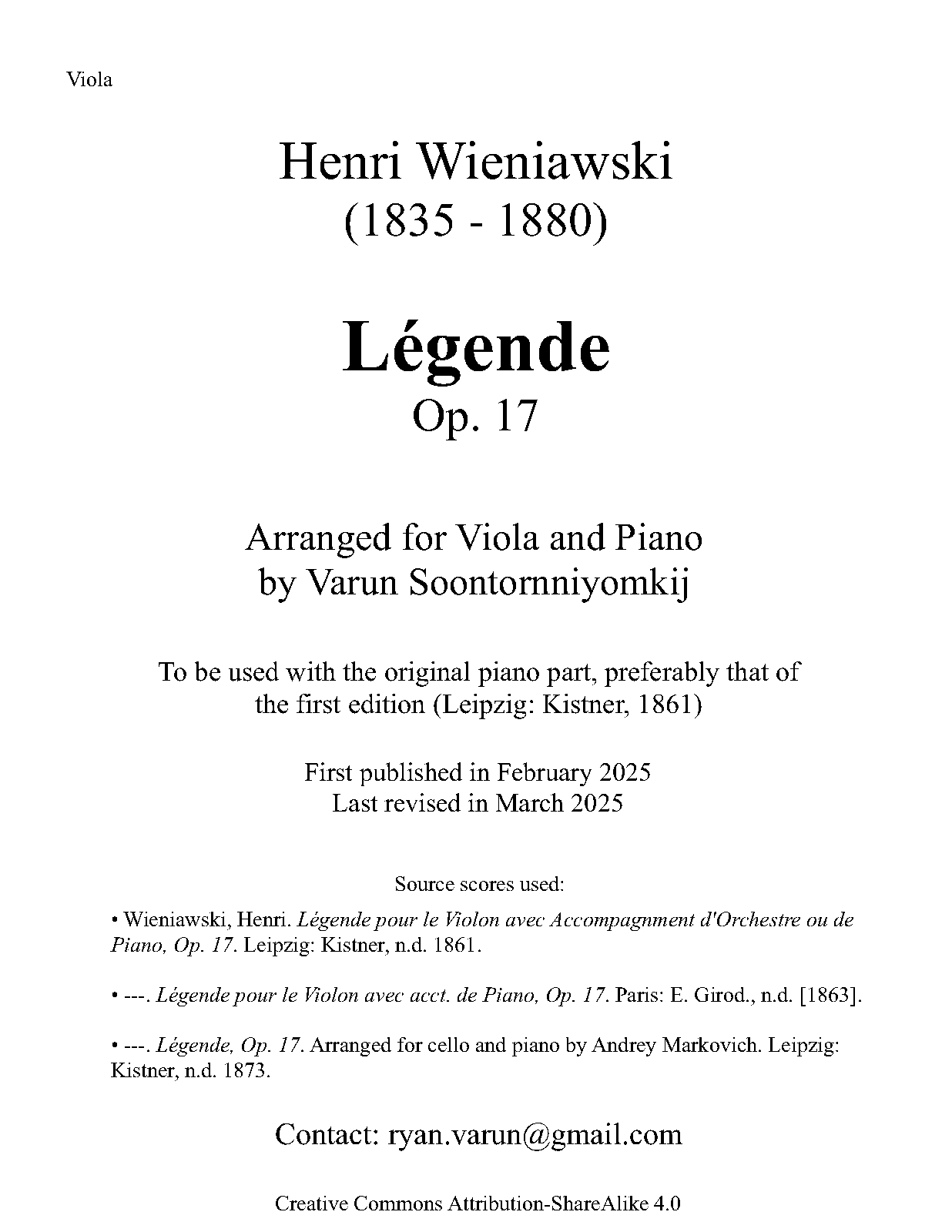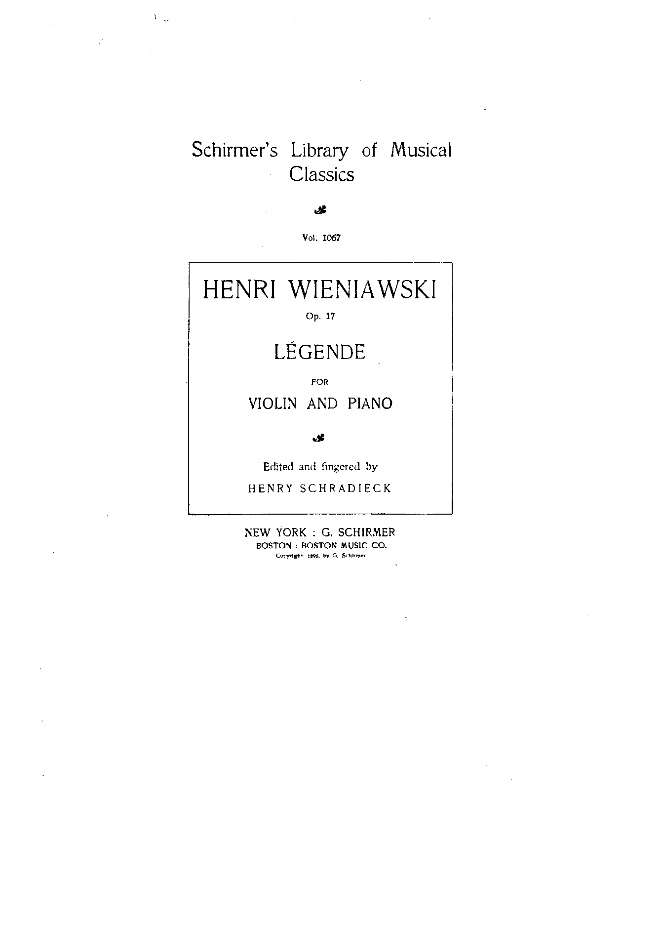 | Work Title | Légende pour le violon avec accompagnement d'orchestre ou de piano |