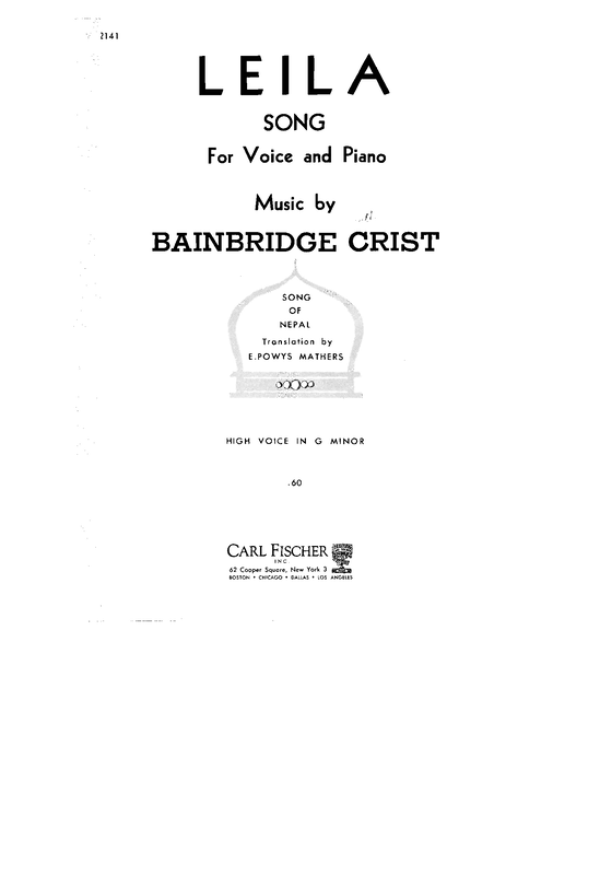| Genre Categories | Songs; For voice, piano; For voices with keyboard; |