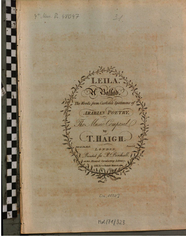 | Text Incipit | Come, Leila, Leila, Leila, fill the goblet up |
