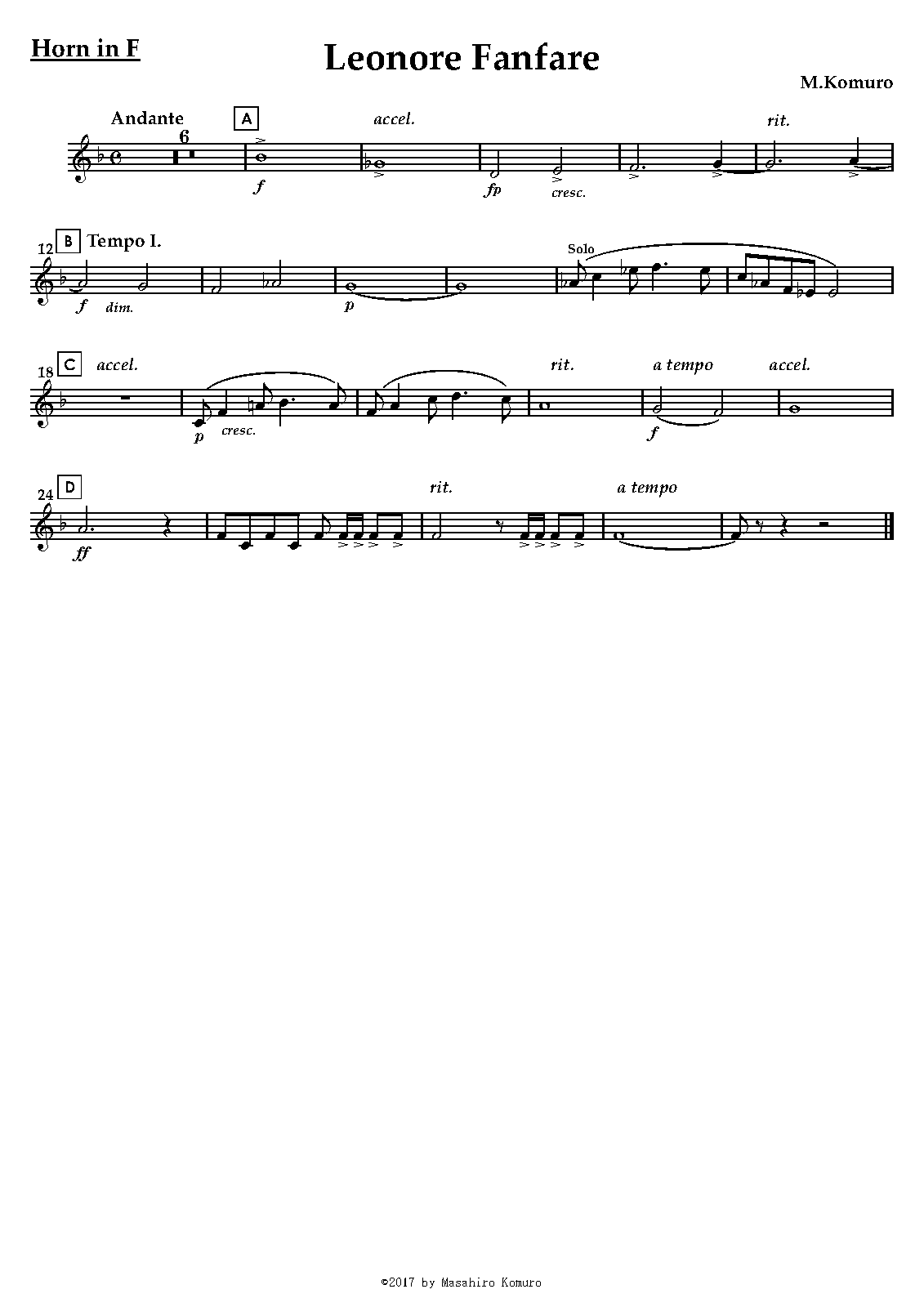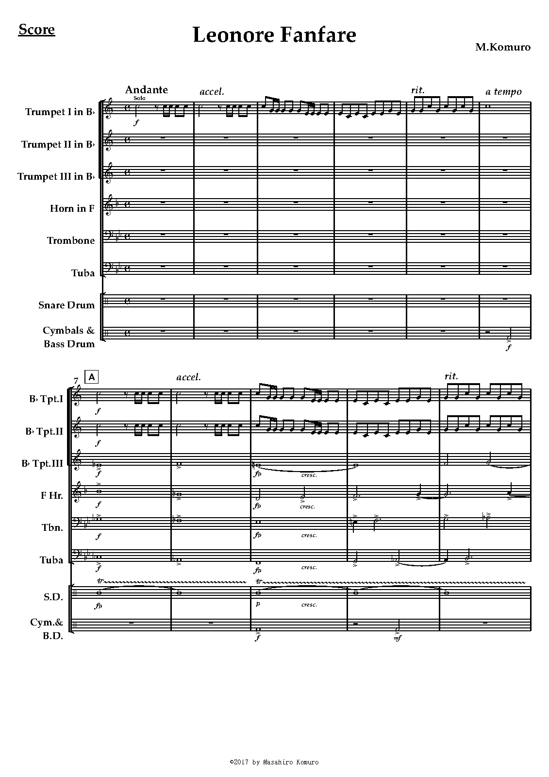 | Instrumentation | horn (F), 3 trumpets (B♭), trombone, tuba, snare drum, cymbals, bass drum |