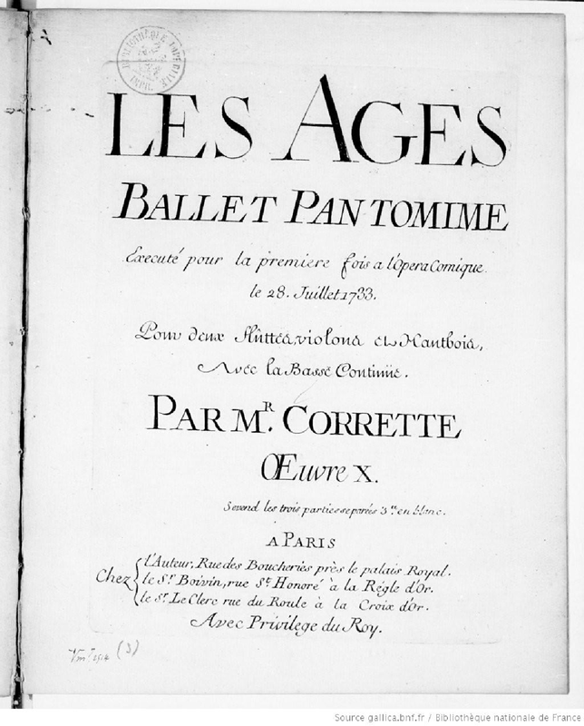 | Alternative. Title | Ballet Pantomime ... pour deux fluttes, violons et hautbois, avec la basse continue |