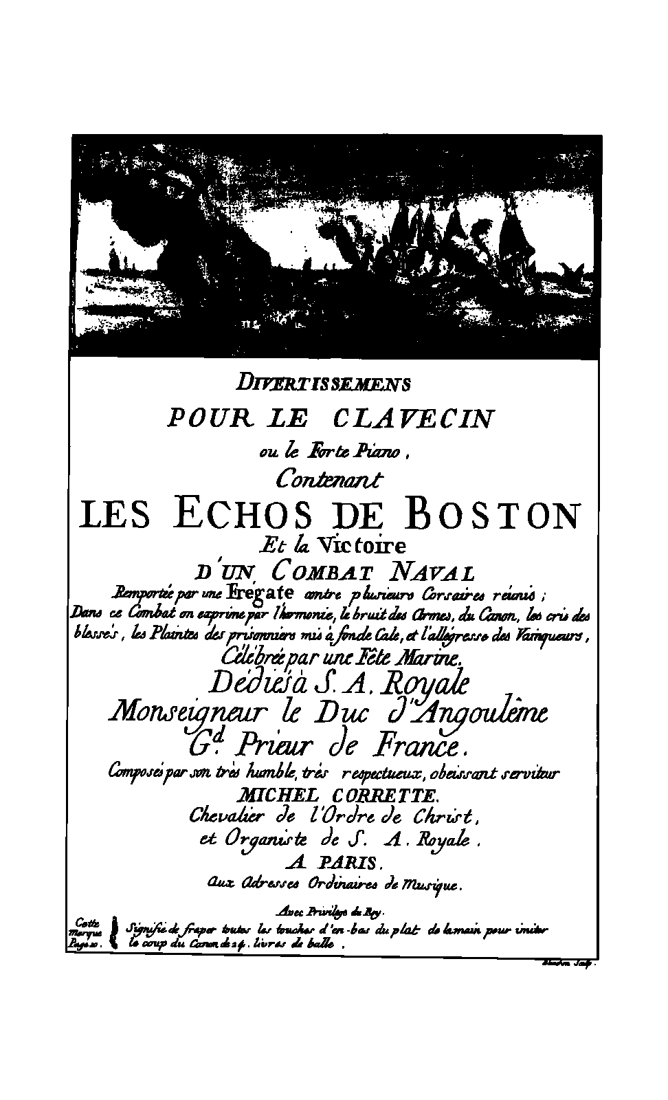| Work Title | Divertissemens pour le Clavecin ou le Forte Piano Contenant les Échos de Boston et la Victoire d’un Combat Naval |