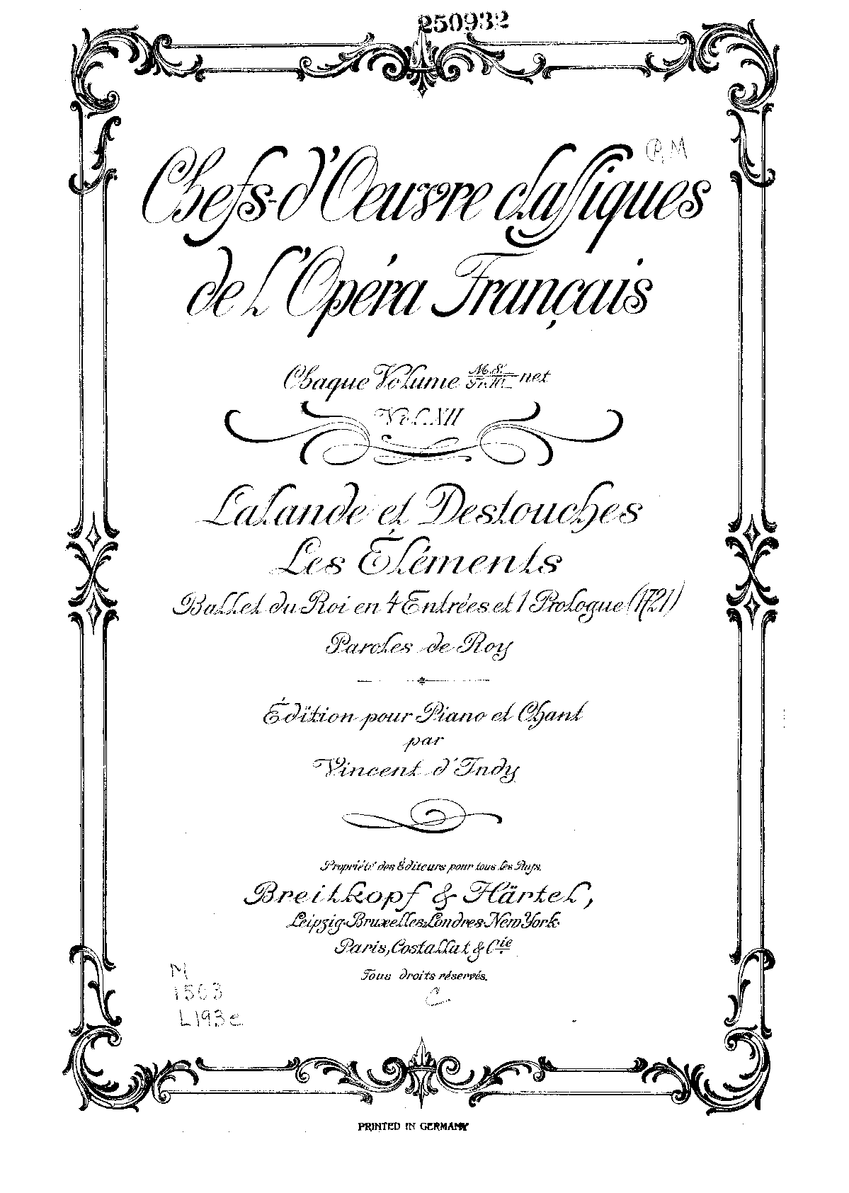 Composed in collaboration with André Cardinal Destouches (1672-1749).
