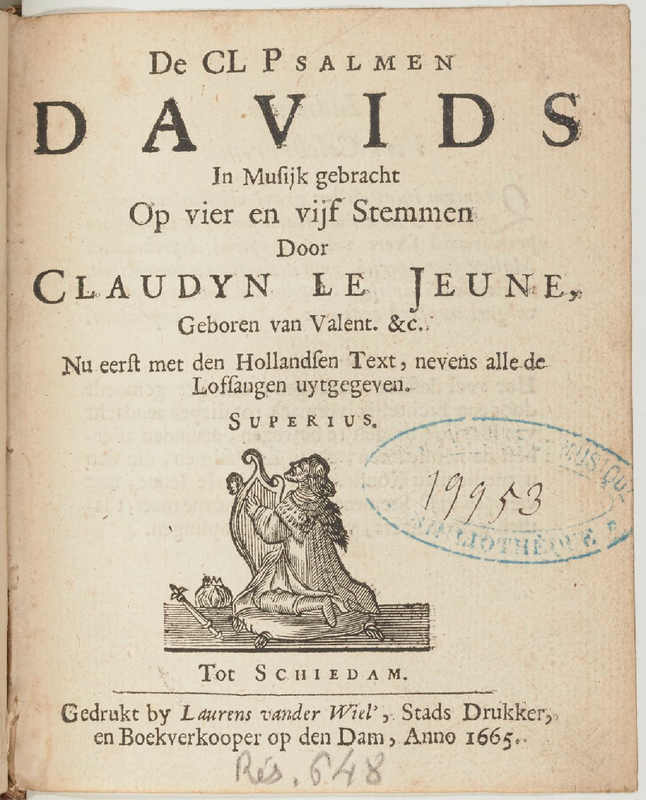 | Alternative. Title | Les cent cinquante Pseaumes de David mis en Musique a quatre [& cinq] parties |
