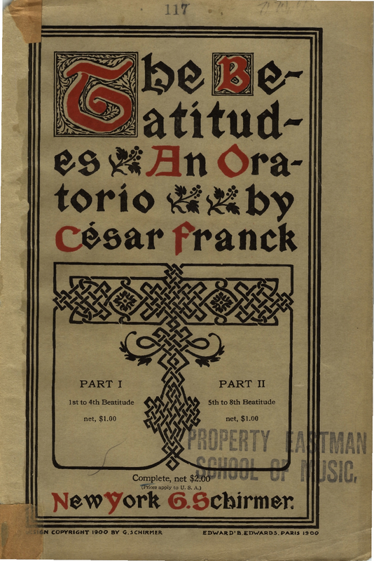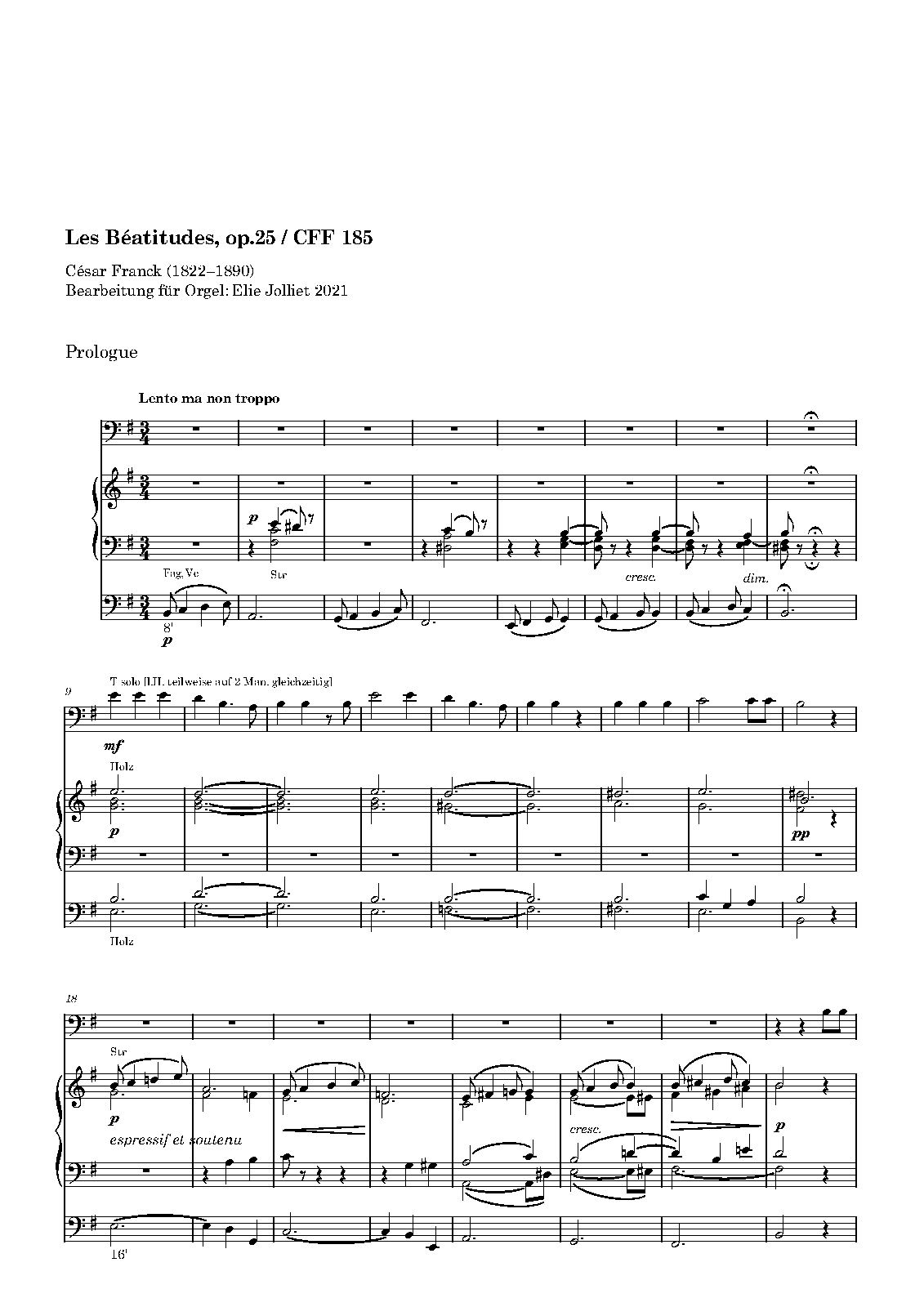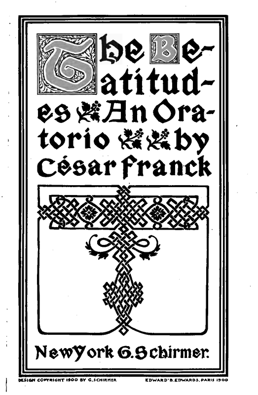 Dates from bnf: 1910 (Prologue and No. 4), 1911 (No. 5) and 1912 (No. 6)<Instrumentation: Prologue - tenor, mixed chorus, 2 pianos Béatitude No.4 - tenor, "Voix du Christ" (baritone?), 2 pianos Béatitude No.5 - "L'Ange du Pardon" (mezzo?), tenor, "Voix du Christ" (baritone?), mixed chorus, 2 pianos Béatitude No.6 - 4 Pharisiens (2 tenors, baritone or bass, bass), "L'Ange de la mort" (baritone or bass?), "Voix du Christ" (baritone?), female chorus