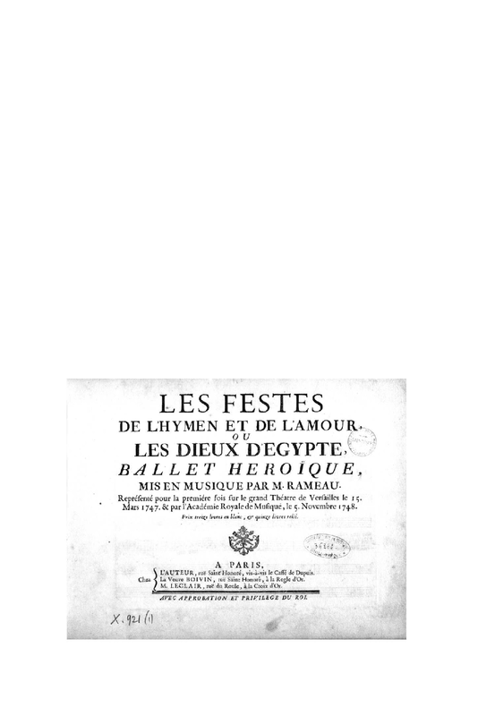 Alternative. Title Les Festes de l’Hymen et de l’Amour, ou les Dieux d’Égypte, ballet héroïque