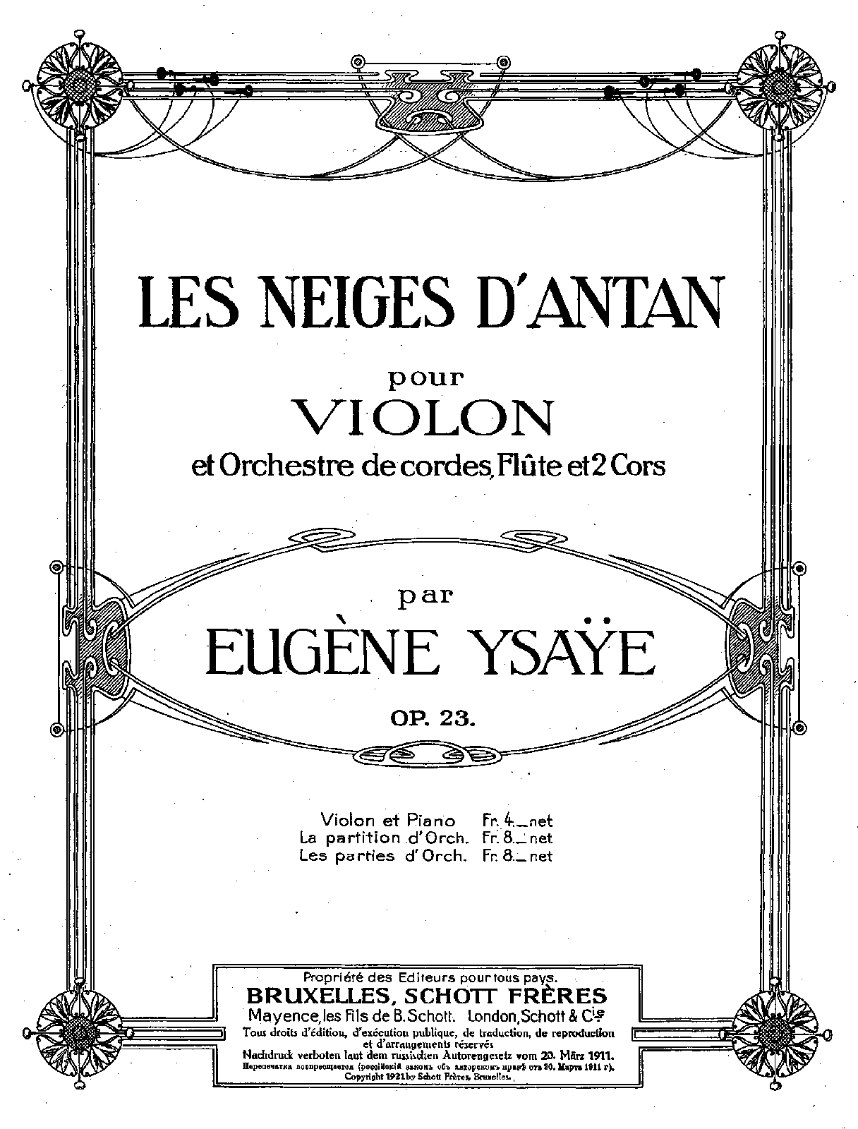 | Alternative. Title | Les Neiges d'antan pour Violon et Orchestre de cordes, Flute et 2 Cors, Op.23; Morceau |