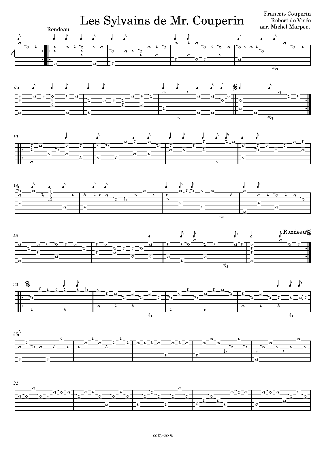 Arrangement pour arciliuto de la transcription de l'oeuvre par Robert de Visée