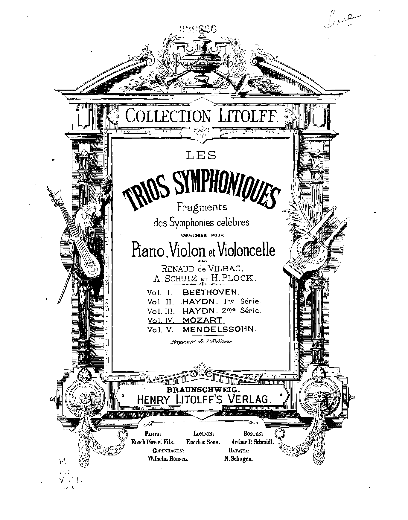 | Genre Categories | Symphonies; For violin, cello, piano (arr); For 3 players (arr); |
