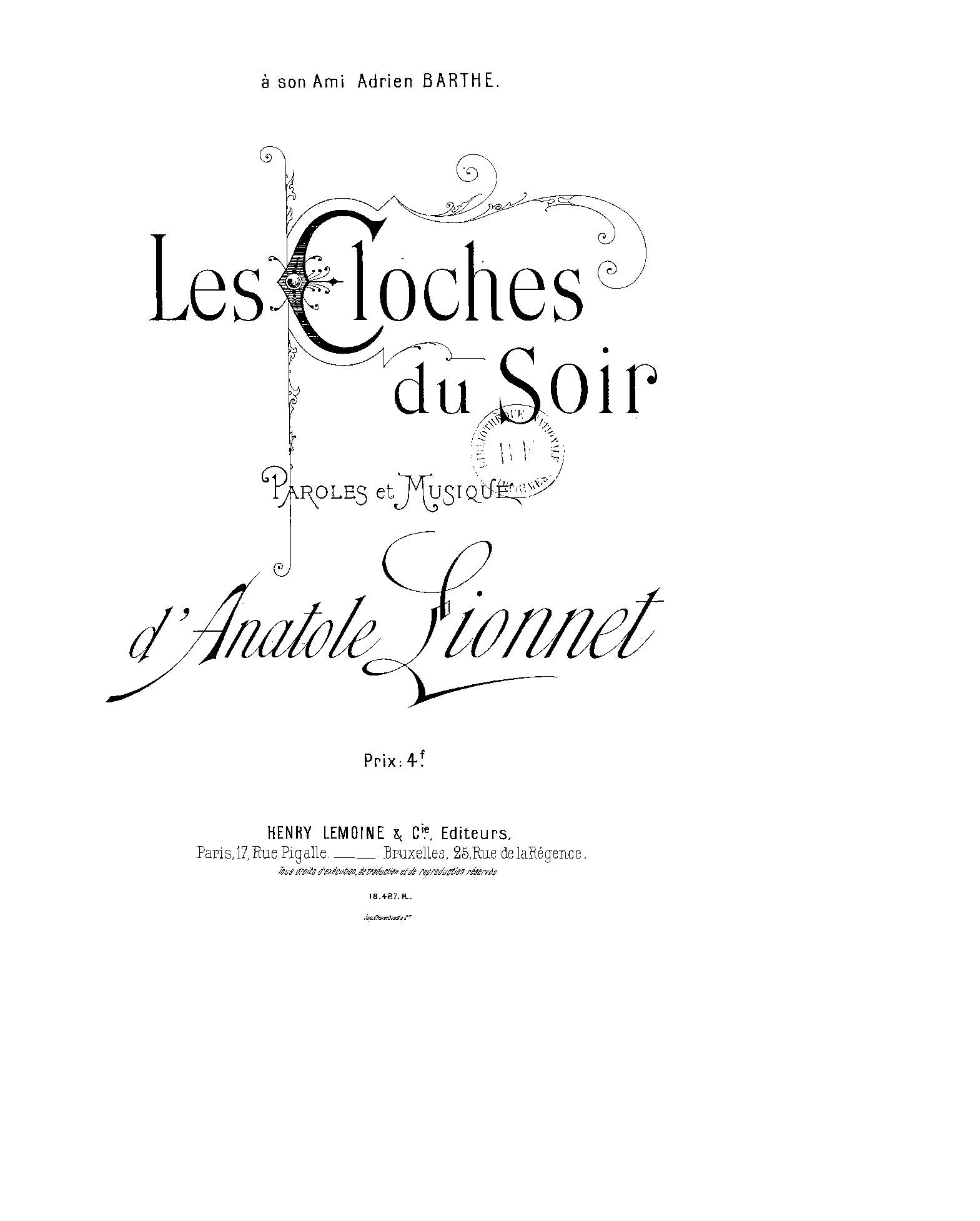 | Dedication | à son ami Adrien Barthe (1828–1898) |