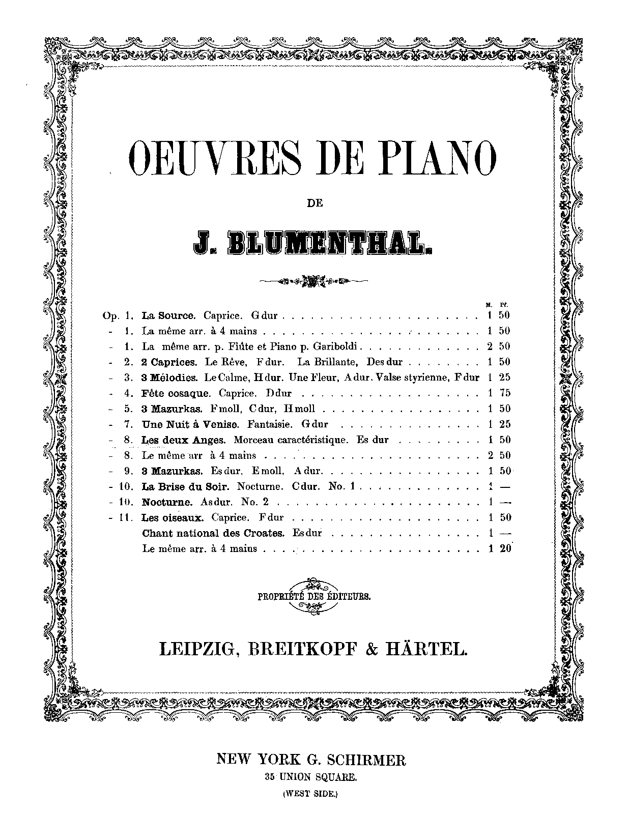 Original scanner may have deleted plate numbers. From a compilation of 8 of Blumenthal's works published by Jurgenson.