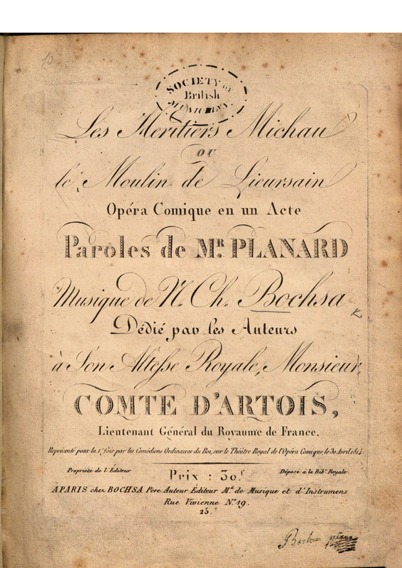 | First Performance. | 1814-04-30 — Paris, Théâtre de l'Opéra Comique |