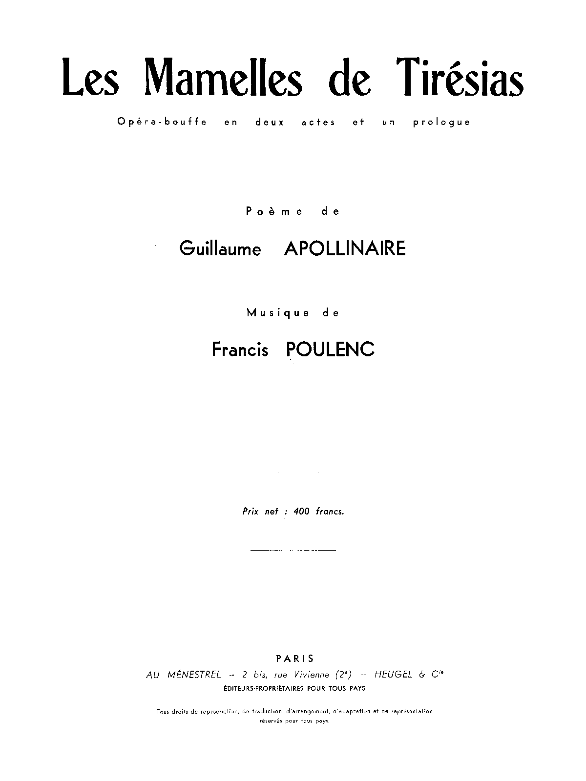 | Work Title | Les mamelles de Tirésias |