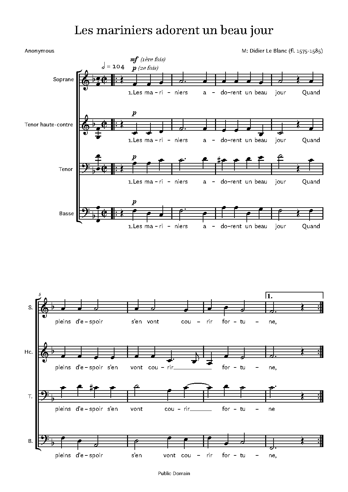 | Work Title | Les mariniers adorent un beau jour |
