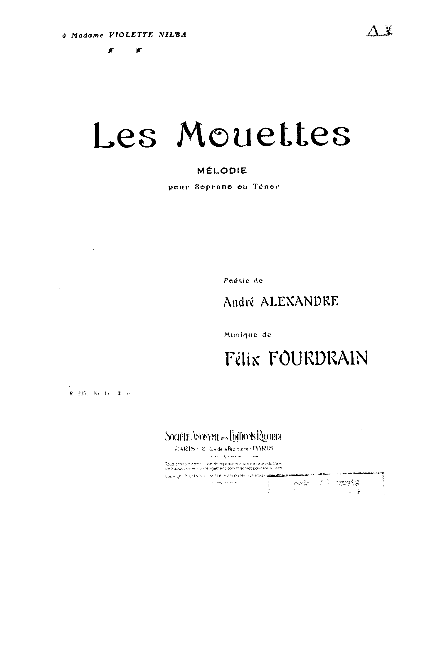 | Dedication | à Madame Violette Nilba |