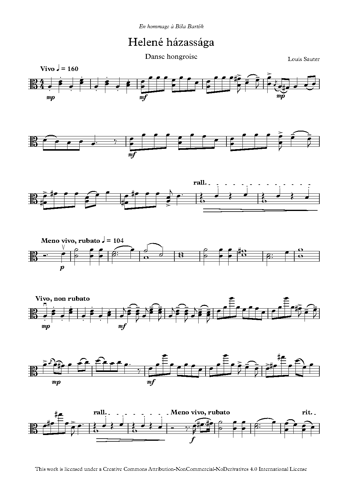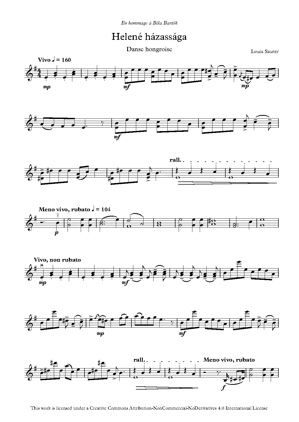The titles of the pieces are "The marriage of Hélène" in Hungarian (Hungarian Folk Dance), French (Nocturne) and Spanish (Tango)