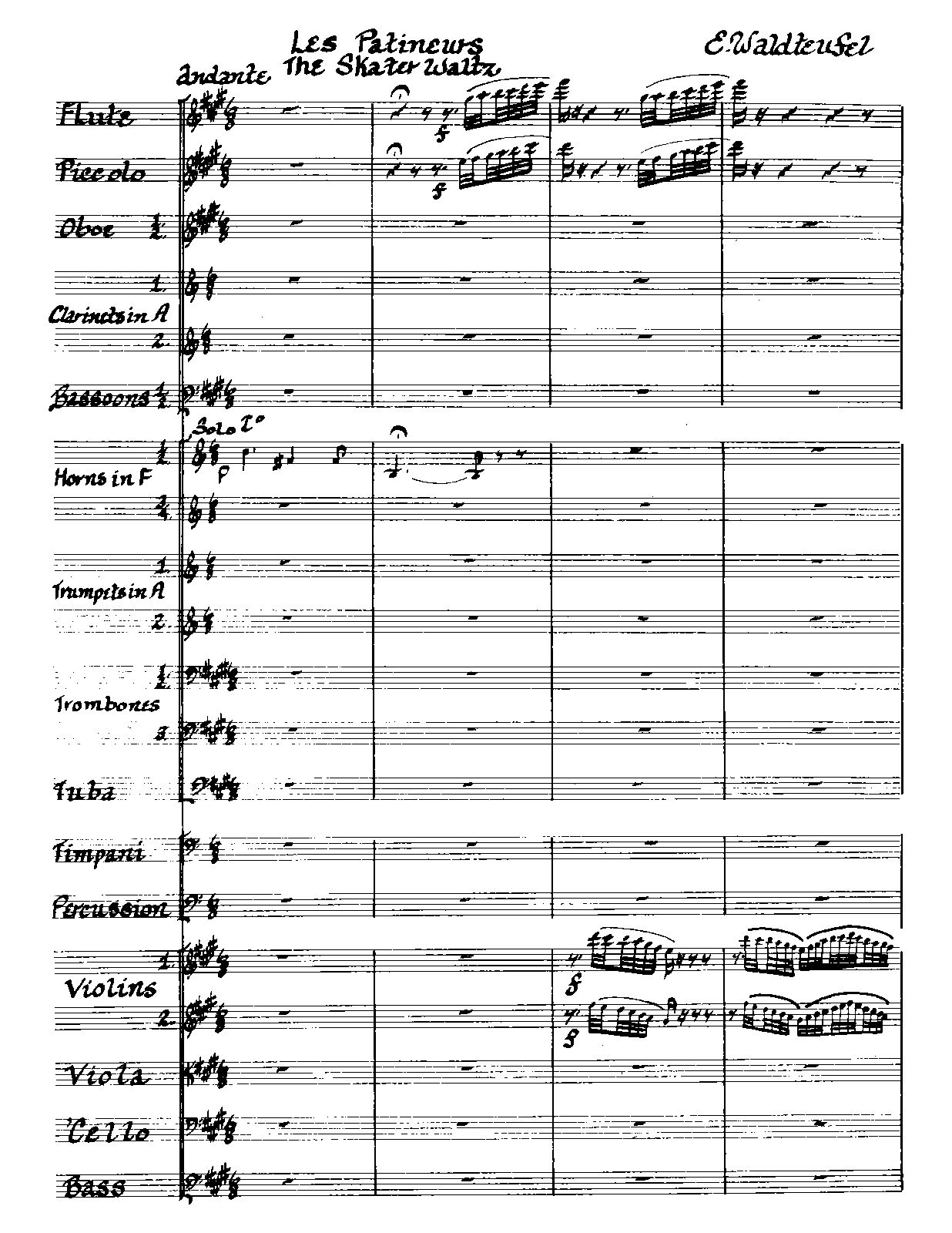 9 more: Oboe 1, 2 • Clarinet 1, 2 (A) • Bassoon 1, 2 • Horn 1, 2, 3/4 (F) • Trumpet 1, 2 (A) • Trombone 1/2, 3, Tuba • Percussion, Timpani • Violins I, II • Violas, Cellos, Basses