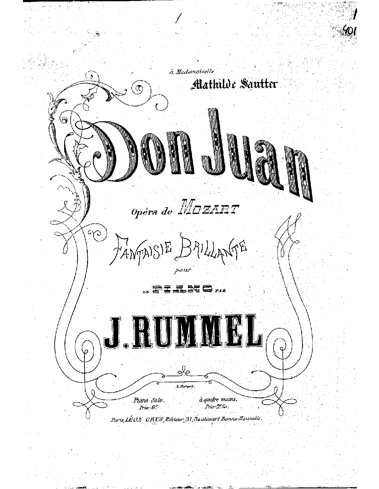 | Copyright Information | Publication noted in the Bibliographie de la France (2d Series, Vol.13, No.14, 3 April 1869, p.163, reg. no.1101 — Galathée & Les sabots de la marquise). (2d Series, Vol.13, No.20, 15 May 1869, p.238, reg. no.1572 — Pepito ). (2d Series, Vol.13, No.20, 15 May 1869, p.238, reg. no.1573 — Le pré aux clercs & I puritani). (2d Series, Vol.13, No.34, 21 August 1869, p.419, reg. no.2607 — Don Giovanni ). (2d Series, Vol.19, No.4, 23 January 1875, p.53, reg. no.268 — Lucie di Lammermoor. Duo brillant) |