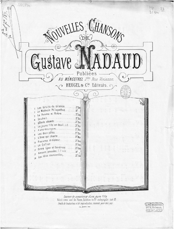 | Genre Categories | Chansons; Songs; For voice, piano; |