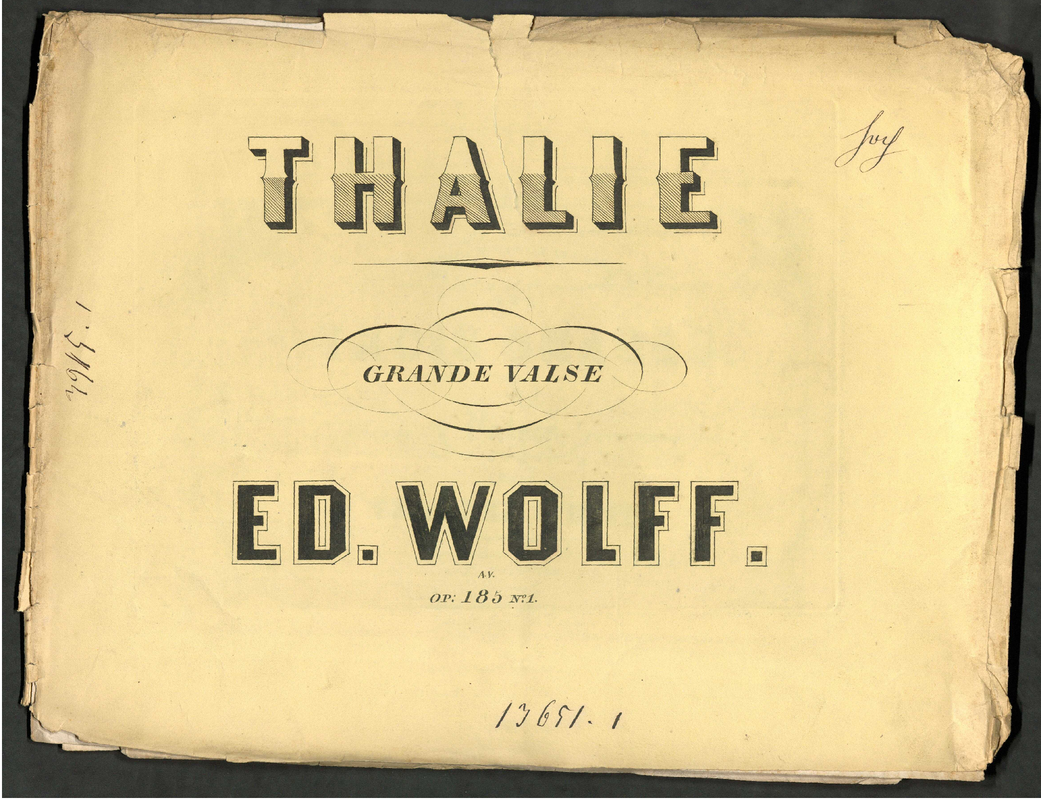 | Dedication | Schott - à sa belle sœœr, Madame Louis Wolff - Heinz - “à son Elève Madem.lle Louise Le Hon” is crossed out |
