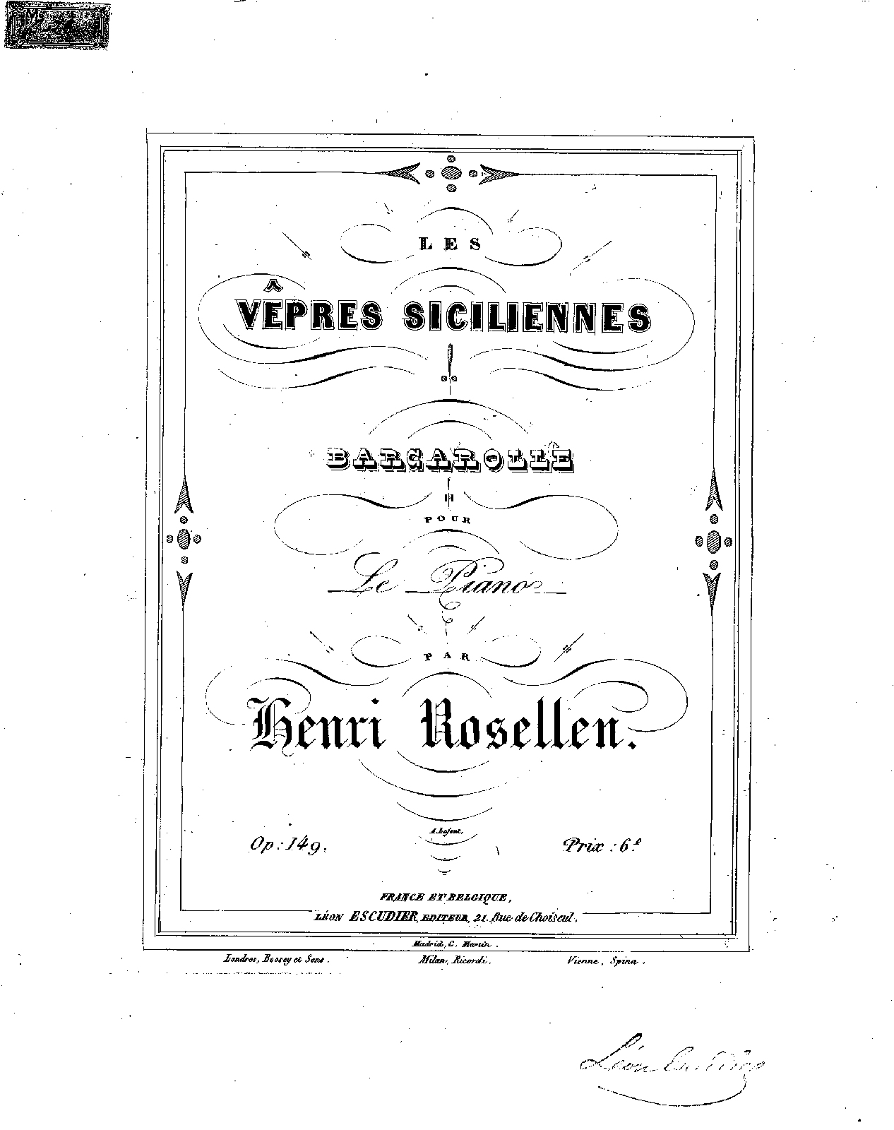 Paris: Léon Escudier, n.d. (ca.1855). Plate L.E. 1515.