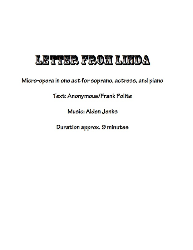 In this piece "Linda" is pouring her heart out in a letter to her friend. She reads portions of the letter aloud from time to time; the soprano takes some of the words and turns them into song. The song expresses the depth of feeling that her words only suggest. The style of the soprano's part evolves from a "country-and-western" style to something closer to opera by the end. The piano plays a third role in all this, ranging from almost a bar-room background to some quite virtuosic and dissonant passages. The piano ends the piece in a wistful, jazzy vein.