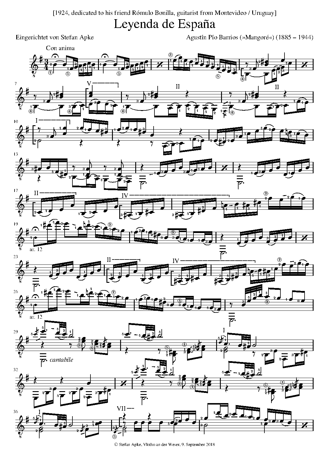 | Composition Year | 1924 (Manuscript); 1st played by Barrios 1925 |