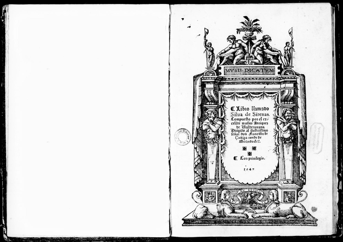 - Motets, canciones, villancicos "para cantar en falsete" (voice and vihuela), by various composers including Lupus, Verdelot, Miguel Ortiz, Arcadelt, Juan Vazquez, Anrriquez (i.e. Valderrabano)