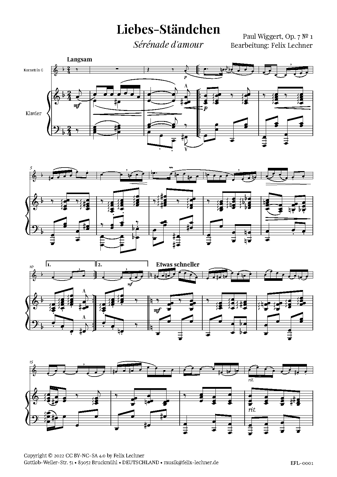 | Movements/SectionsMov'ts/Sec's | 1 piece (Langsam — Etwas schneller — Tempo I) |