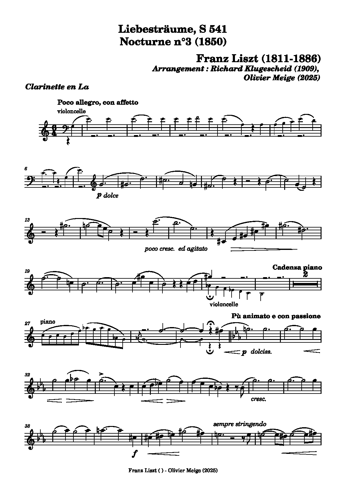 Misc. Notes Nocturne n°3, arrangement de R. Klugescheid : transcription de la partie de violon pour clarinette (violoncelle et piano inchangés)