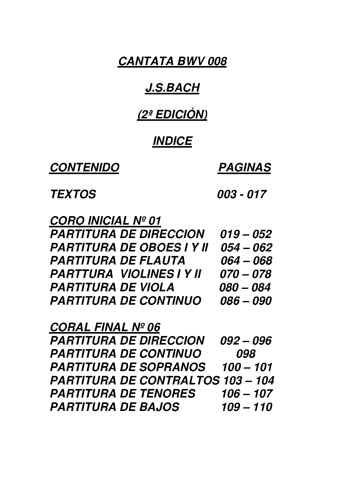 Opus/Catalogue NumberOp./Cat. No. BWV 8 ; BC A 137a-b