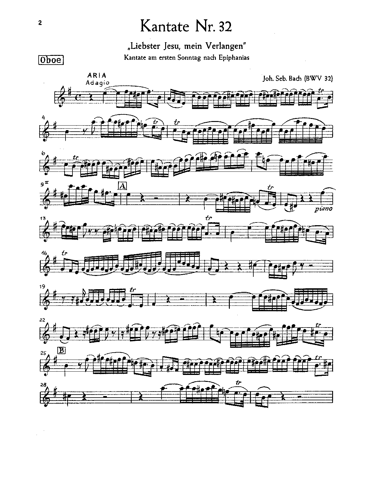 1. Aria (soprano): Liebster Jesu, mein Verlange (E minor)